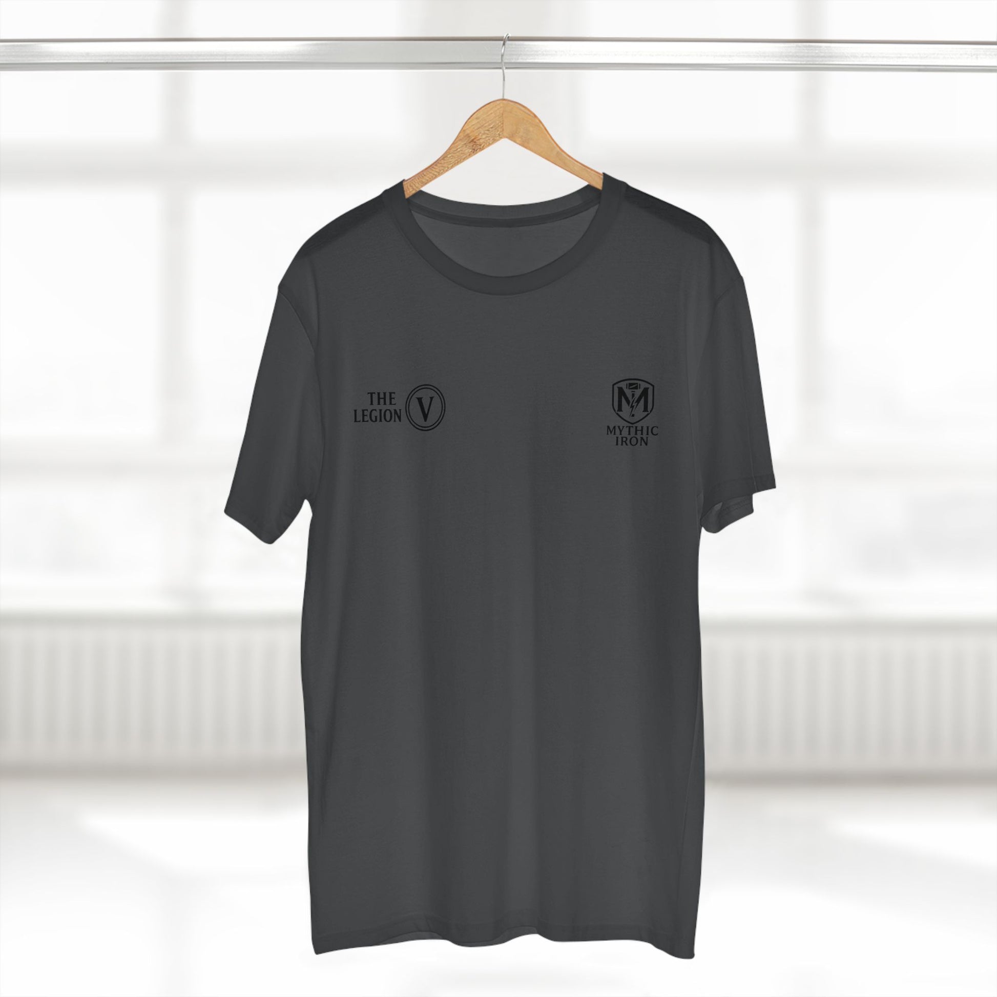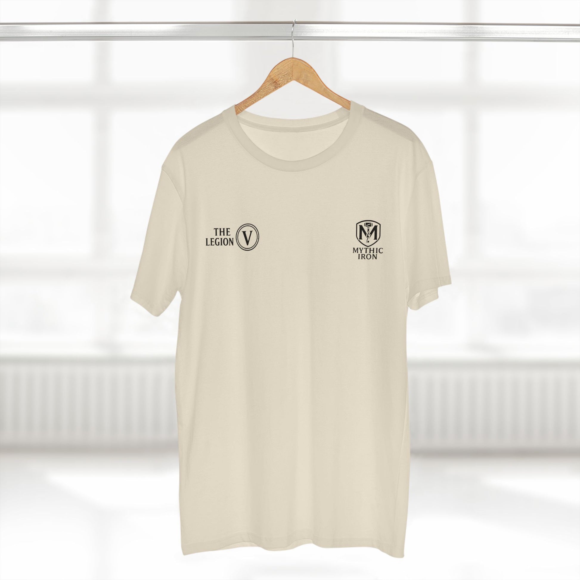 The Legion V Tee stands as a minimalist emblem of allegiance to the Mythic Iron brotherhood — clean, precise, and forged with intent. Featuring the dual front crests — The Legion V insignia on the left chest and the Mythic Iron mark on the right — this design honors the disciplined few who live by the code: Strength. Loyalty. Iron.